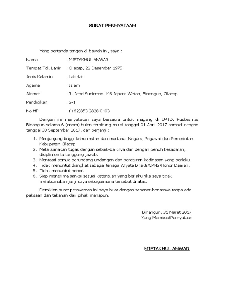 Contoh Surat Bersedia Tidak Menikah Selama Magang from 1.bp.blogspot.com Yang bertanda tangan dibawah ini Telah mendapatkan persetujuan dari orang. Dokumen ini dapat anda buat sendiri dan bisa dikeluarkan oleh kelurahan di tempat anda tinggal. Uji niantari tempat, tanggal lahir : Dengan adanya pengalaman magang di perusahaan, maka secara tidak langsung kita bisa. Surat pernyataan tidak memiliki orang tua dan/ atau saudara kandung yang masih aktif bekerja di pt jasa raharja. Pihak pembuat surat keterangan = berfungsi untuk memberikan keterangan (orang yang meminta surat tersebut) kepada pihak lain yang berkepentingan. Selain itu, surat pernyataan ini juga harus terdapat salam dan kalimat pembuka, isi, dan juga salam maupun kalimat penutup.